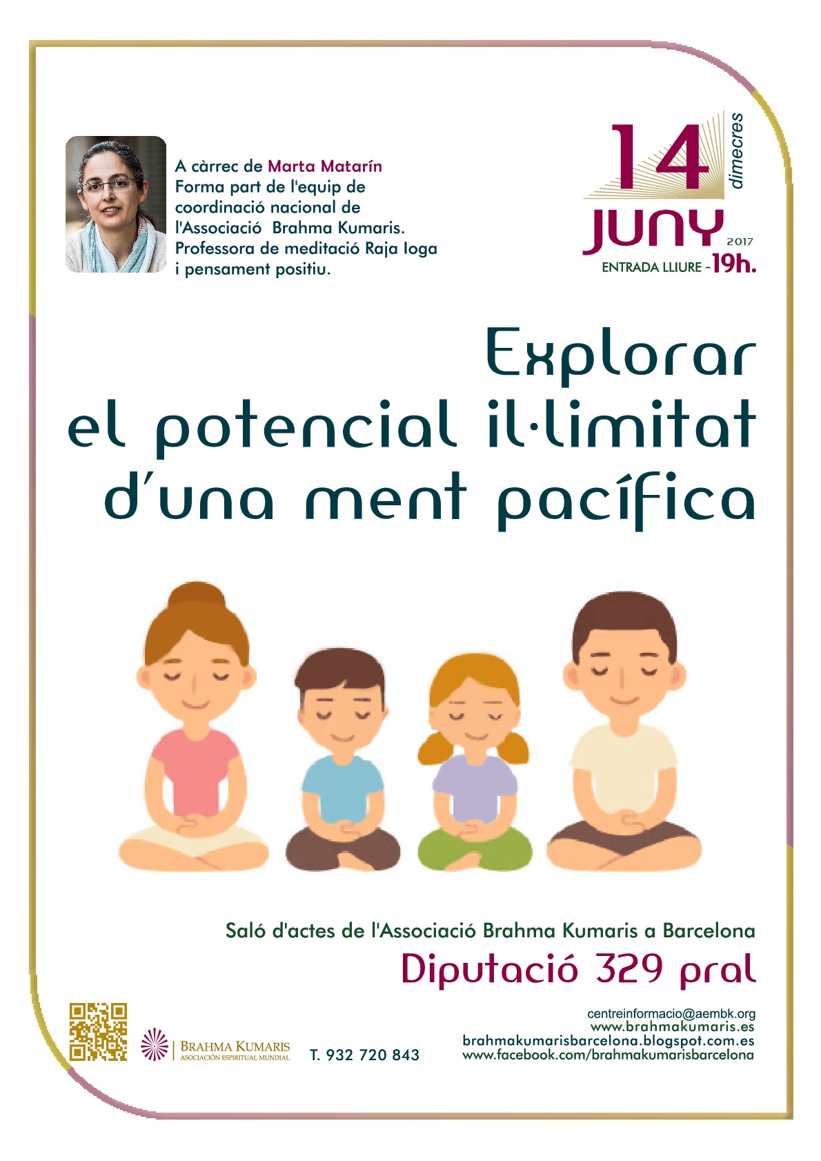 amb el títol “Explorar el potencial il·limitat d’una ment pacífica“. Tindrà lloc a la seu de Brahma Kumaris