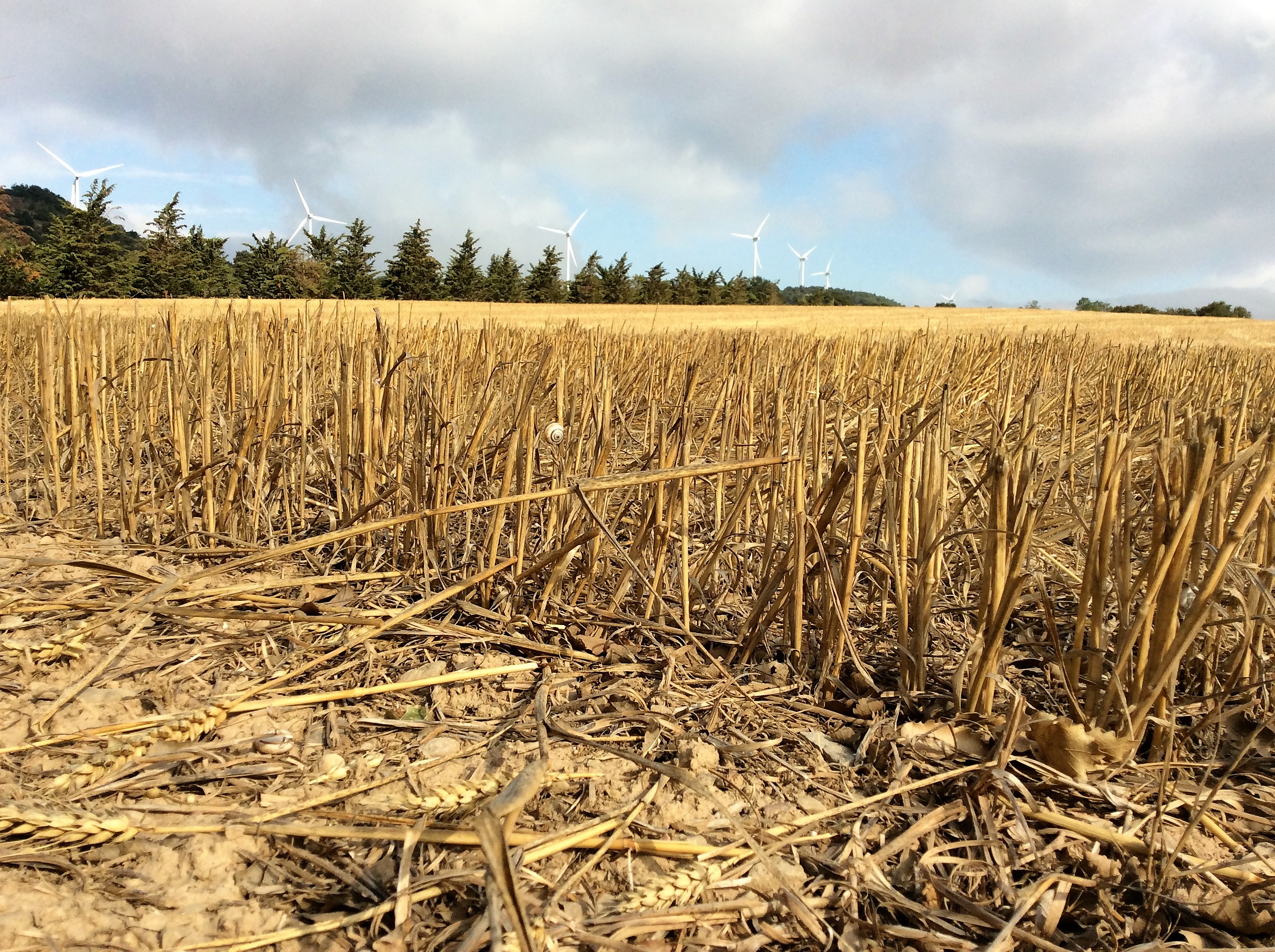 El aspecto desolado del paisaje no ha desanimado a ese caracol; cree que todavía tiene alguna posibilidad de medrar. Los molinos de viento a lo lejos, dan una visión prehistórica del futuro que aún no somos capaces de imaginar; ¿servirán acaso para deshacer los nubarrones que se observan en la lejanía?