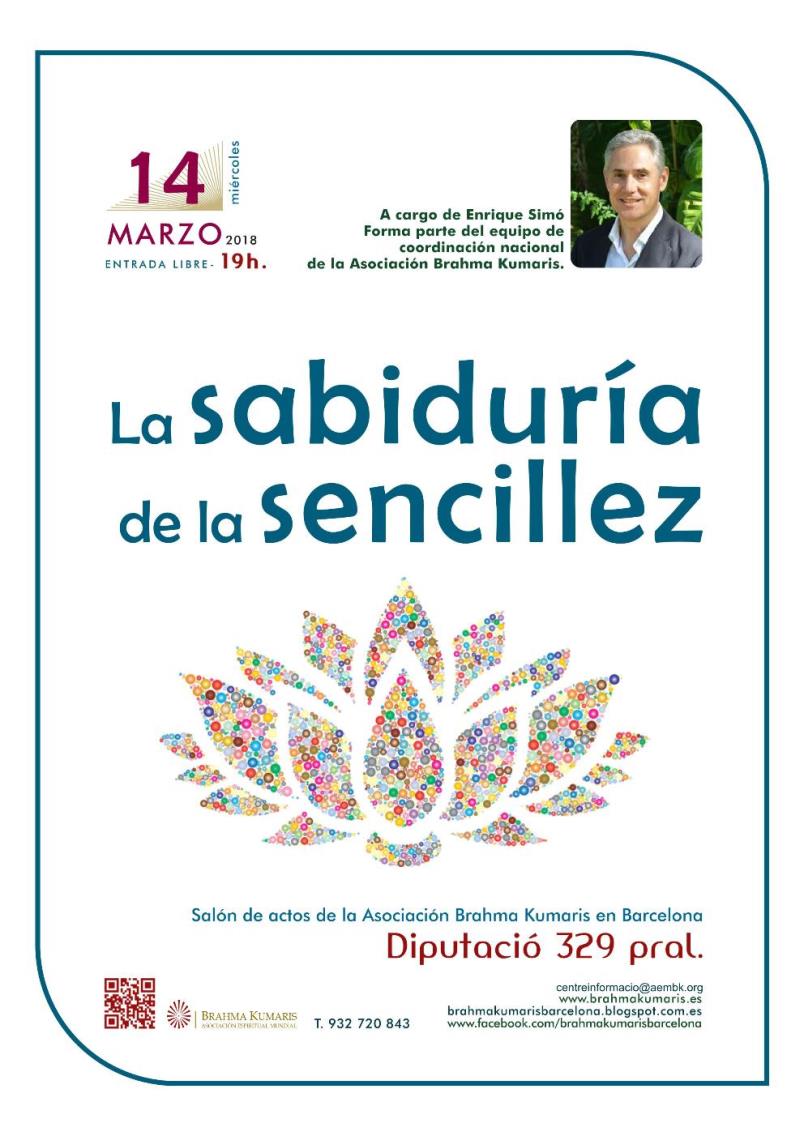 Queridos/as amigos/as: Os informamos de la conferencia que dará Enrique Simó el miércoles 14 de marzo a las 19h. con el título: “La sabiduría de la sencillez”.