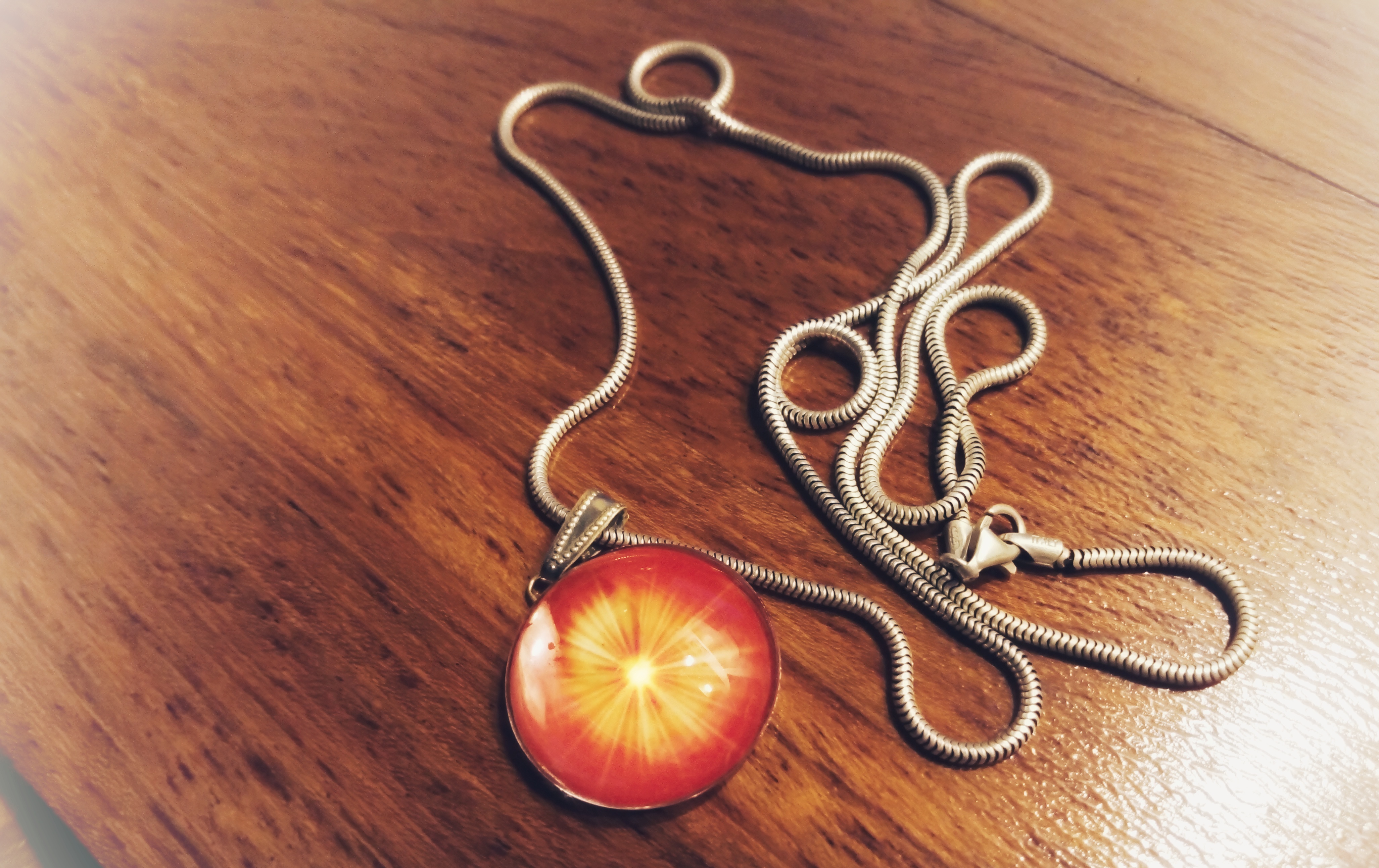 Porto penjada al coll una medalla que és un símbol que em recorda quí sóc i quí és Ell. De vegades algú que l’ha vist m’ha preguntat: -Què és aquest símbol que dus?- L’hi he acostat perquè la veiés de prop i li he dit: -veus?, és un punt de llum que em recorda que sóc llum i que Déu és així també. Només que Ell no té cap imatge corporal com nosaltres, perquè Ell no té mai un cos propi. Per això, per recordar-Lo i per poder connectar-m’hi, només em cal mirar qualsevol reflex de llum i és com si l’estigués veient a Ell, i, com si em veiés a mi mateixa, de forma subtil. És aleshores quan aquella coneguda frase “Déu ens ha fet a la Seva imatge i semblança”, té sentit; doncs, som com Ell: ànimes, llum; però només ens Hi podem assemblar quan recuperem la nostra memòria oblidada de ser una ànima en aquest cos, i, quan