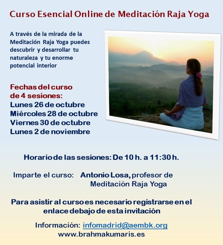 Nuevo Curso Online Esencial de Meditación Raja Yoga, inicia lunes 26 de octubre