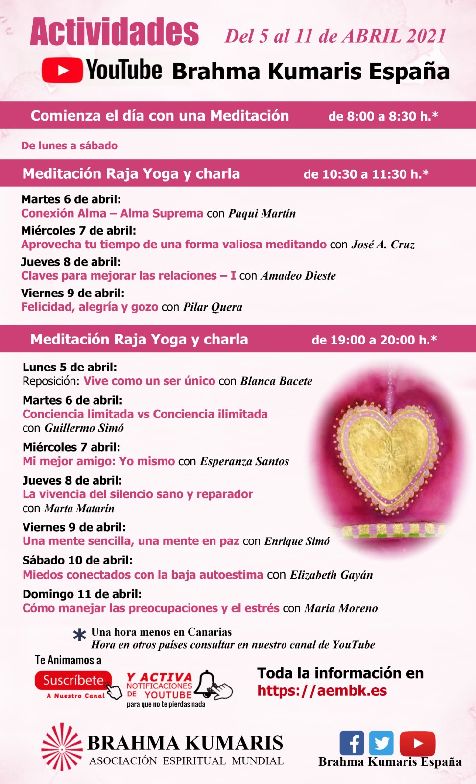 Os invitamos a nuestras “Meditaciones Raja Yoga con charla” desde el Canal de YouTube Brahma Kumaris España . ✅Suscríbete y Activa 🔔la Campanita para que no te pierdas nada https://www.youtube.com/BrahmaKumarisEspaña