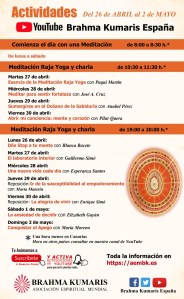 Os invitamos a nuestras “Meditaciones Raja Yoga con charla” desde el Canal de YouTube Brahma Kumaris España.