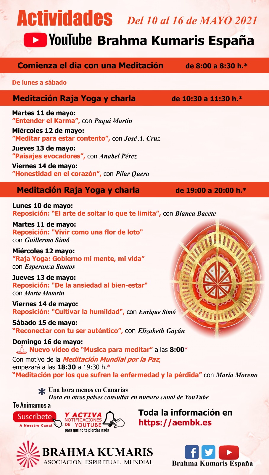 Os invitamos a nuestras “Meditaciones Raja Yoga con charla” desde el Canal de YouTube Brahma Kumaris España.