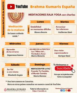 Domingo 15 de agosto18:30 a 19:30 h.*Meditación mundial por la Paz del 3º domingo: “Cuando Yo Cambio, el Mundo Cambia” con María Moreno