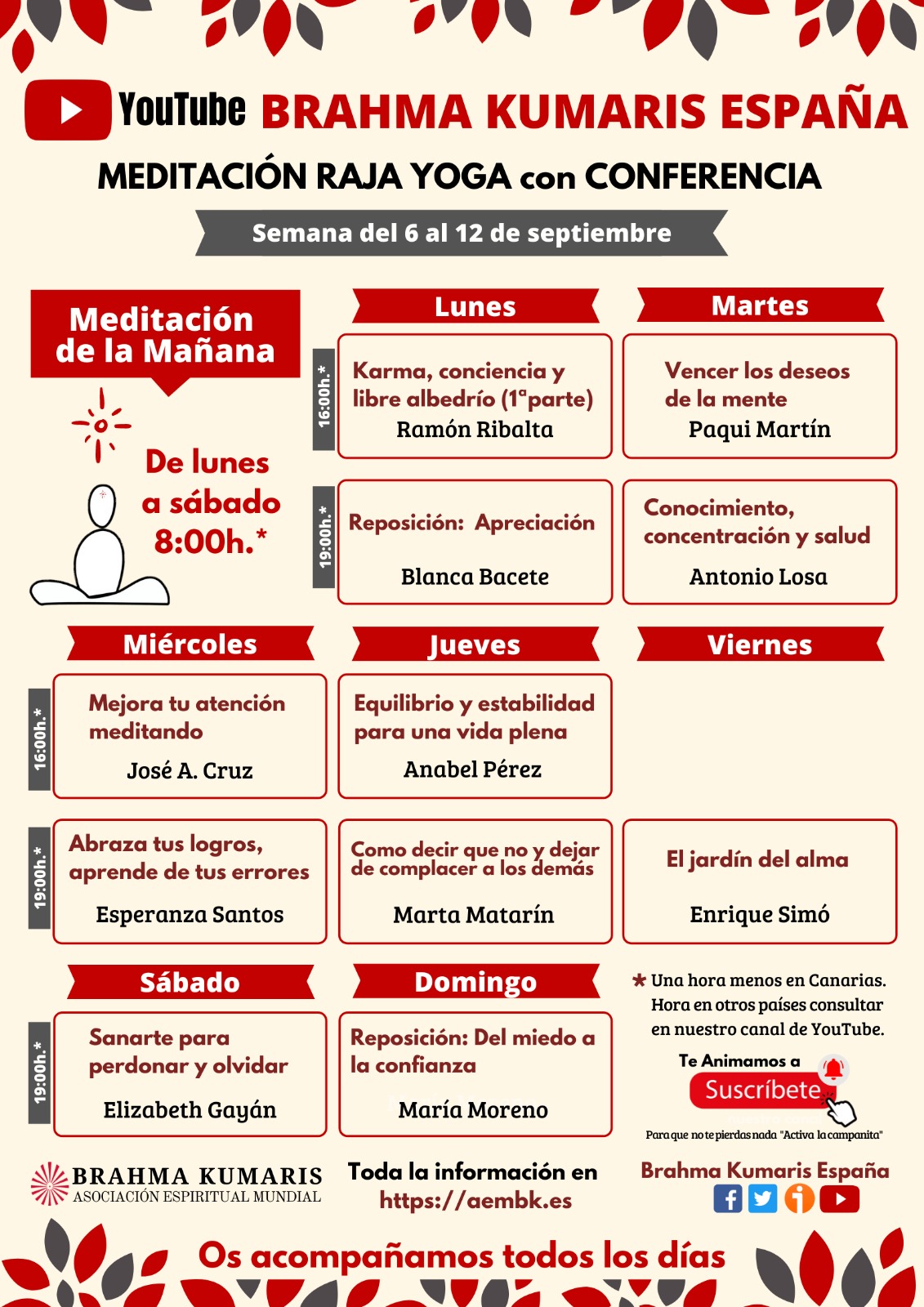 📌Toda la información de nuestras “Meditaciones Raja Yoga con conferencia” en el Canal de YouTube Brahma Kumaris España en https://aembk.es/