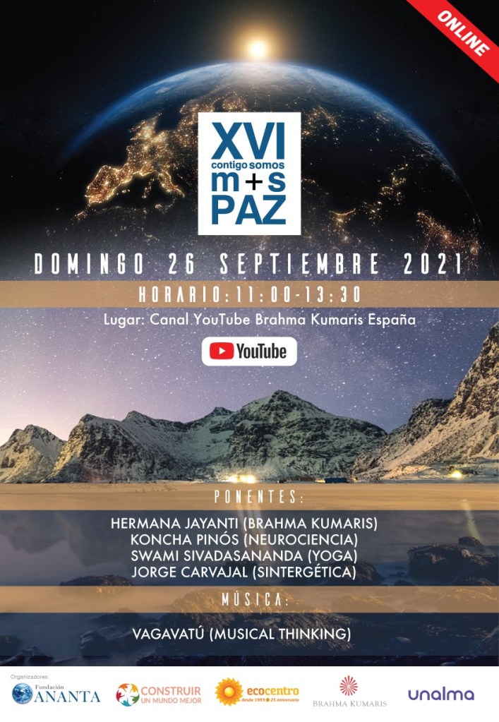 Este encuentro online está organizado por Fundación Ananta, Ecocentro, Construir un Mundo Mejor, Unalma y Brahma Kumaris, y será retransmitido en directo desde el canal You Tube Brahma Kumaris España.
