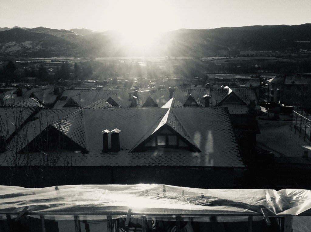 Anit, a l’anar a dormir, nevava de forma intensa. Cap a les tres de la matinada el vent era tan fort que m’ha tret de la son. Hi havien plàstics a l’estenedor protegint de la nevada la roba estesa , i la inquietud era si podrien resistir els embats del vent, si al fer-se clar encara hi serien.