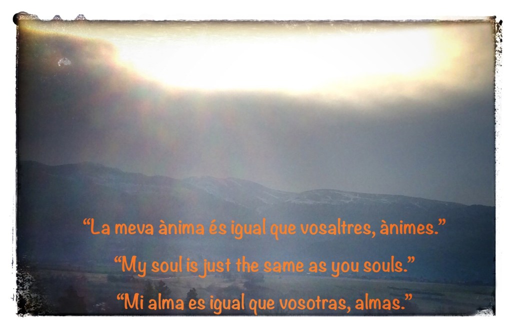 Si un ésser humà digués: -jo l’ànima us estic explicant- ens sentiríem formar part d’una gran família que té un Gran Pare que ja ens ha dit ser igual que nosaltres com a Ànima. Llavors, cap guerra podria entrar en una posibilitat real. Cap ànima humana o Divina és més gran que l’altra.