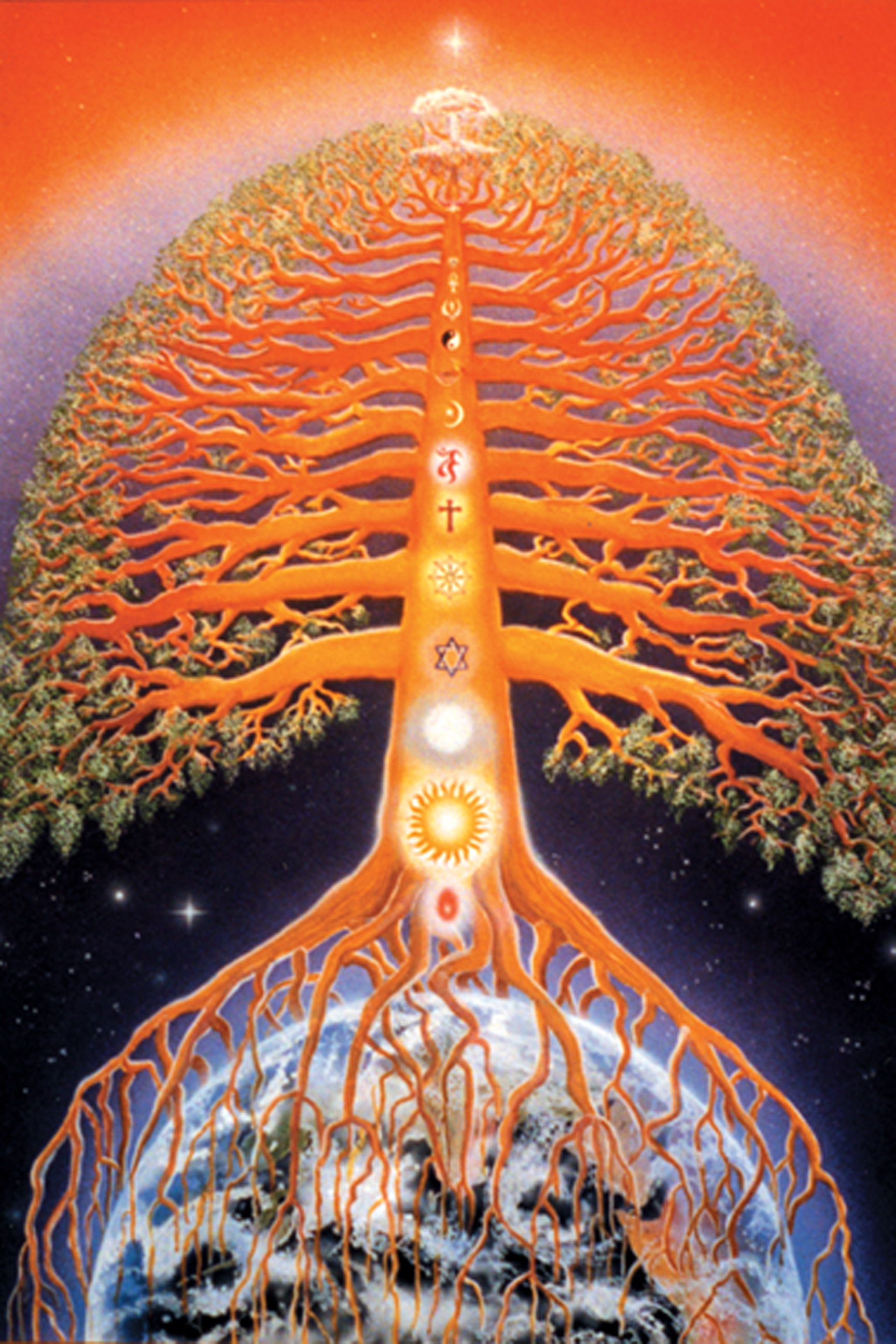 En això hi ha una manera de veure-ho tal com passa en la natura: Un arbre es carrega de branques branquetes i fulles al llarg de la seva vida útil. Les branques es mantenen generalment i en un arbre de fulles caduques aquestes es regeneren cada cicle estacional. Les branques son les religions principals, les branquetes (sectes i derivacions) han anat sorgint d’aquelles branques principals; mentre tant les fulles (éssers humans) han anat creixent, pansint-se i caient cada tardor. Ara es podria dir que estem en la tardor de l’arbre del món humà, o el final de la seva vida útil.., i que un nou plançó està brotant al seu peu, que tot segueix endavant perquè l’arbre ara s’està regenerant des de la seva pròpia llavor. O sigui, encara que tot sembli ensorrar-se.., tot tornarà a posar-se bé. S’està acabant un cicle i n’està començant un altre.
