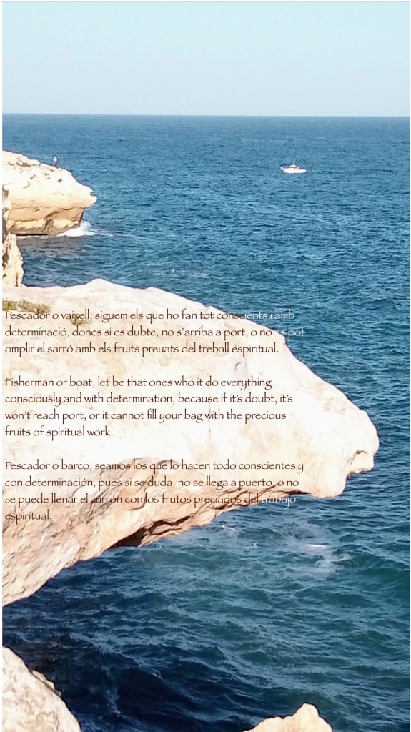 Pescador o vaixell, siguem els que ho fan tot conscients i amb determinació, doncs si es dubte, no s’arriba a port, o no es pot omplir el sarró amb els fruits preuats del treball espiritual.