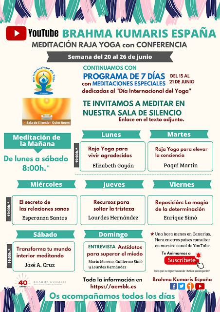 Os invitamos a nuestras “Meditaciones Raja Yoga con conferencia” desde el Canal de YouTube Brahma Kumaris España.