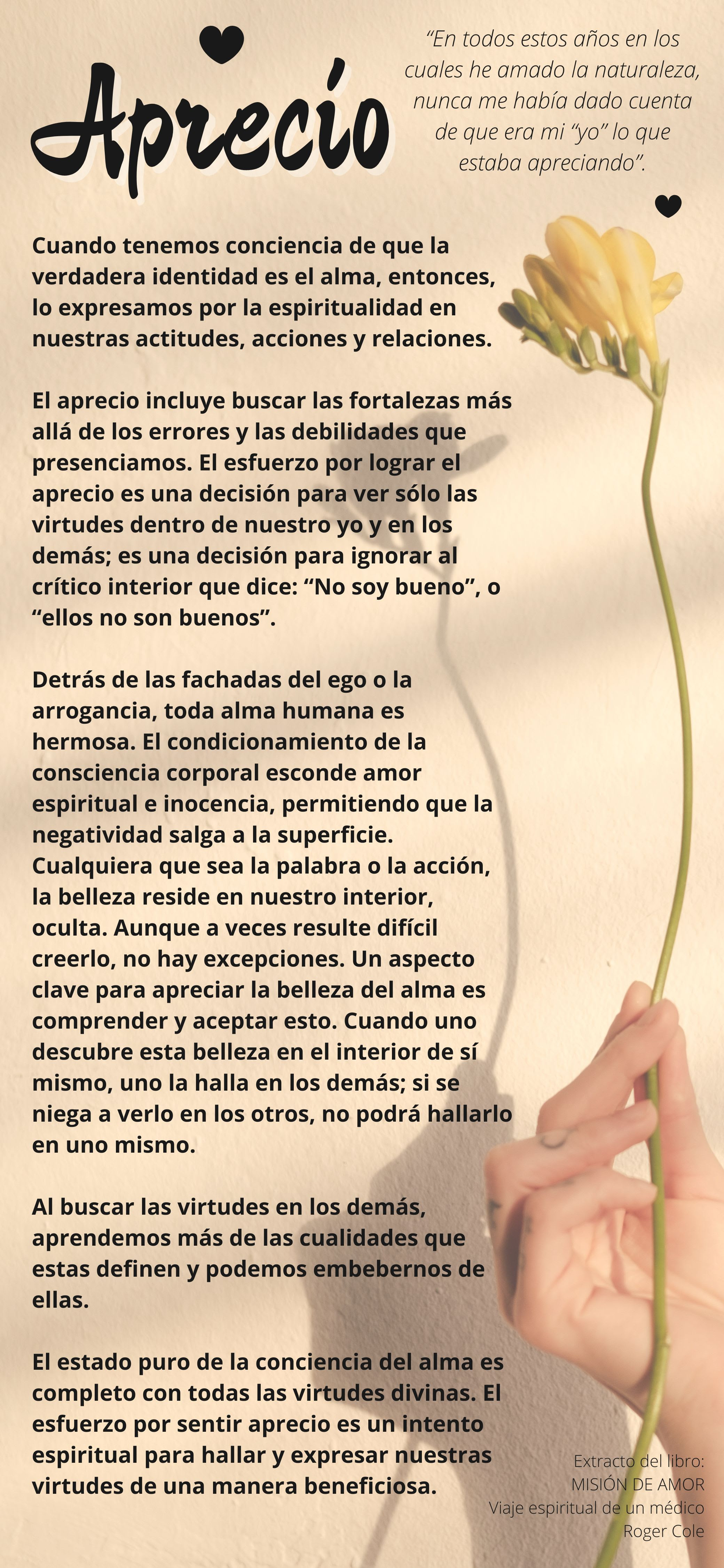 El estado puro de la conciencia del alma es completo con todas las virtudes divinas. El esfuerzo por sentir aprecio es un intento espiritual para hallar y expresar nuestras virtudes de una manera beneficiosa.