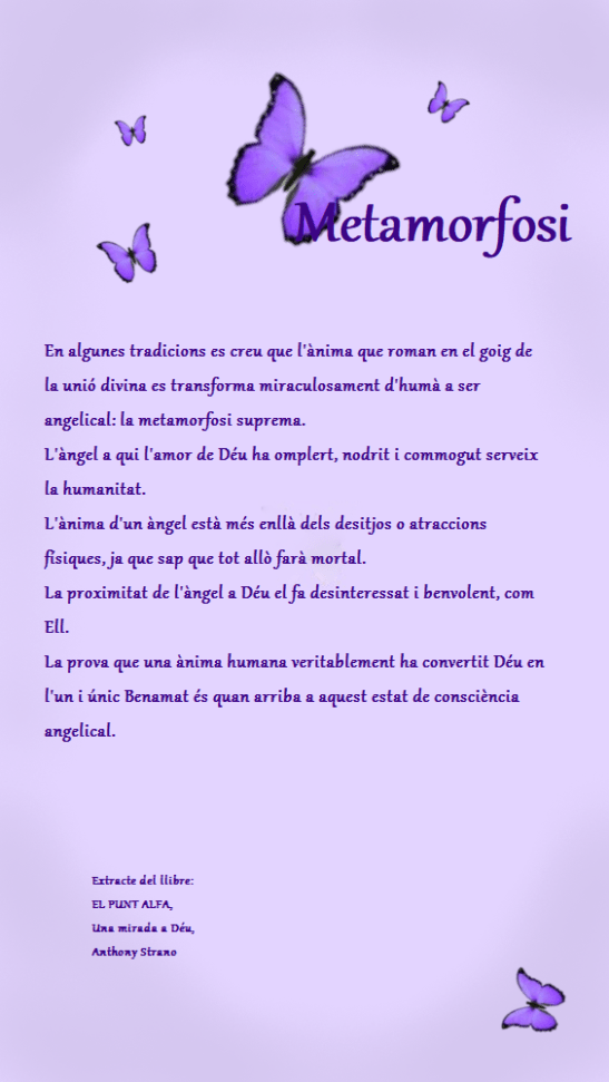 In some traditions it is believed that the soul that remains in the bliss of divine union is miraculously transformed from human to angelic: the ultimate metamorphosis.