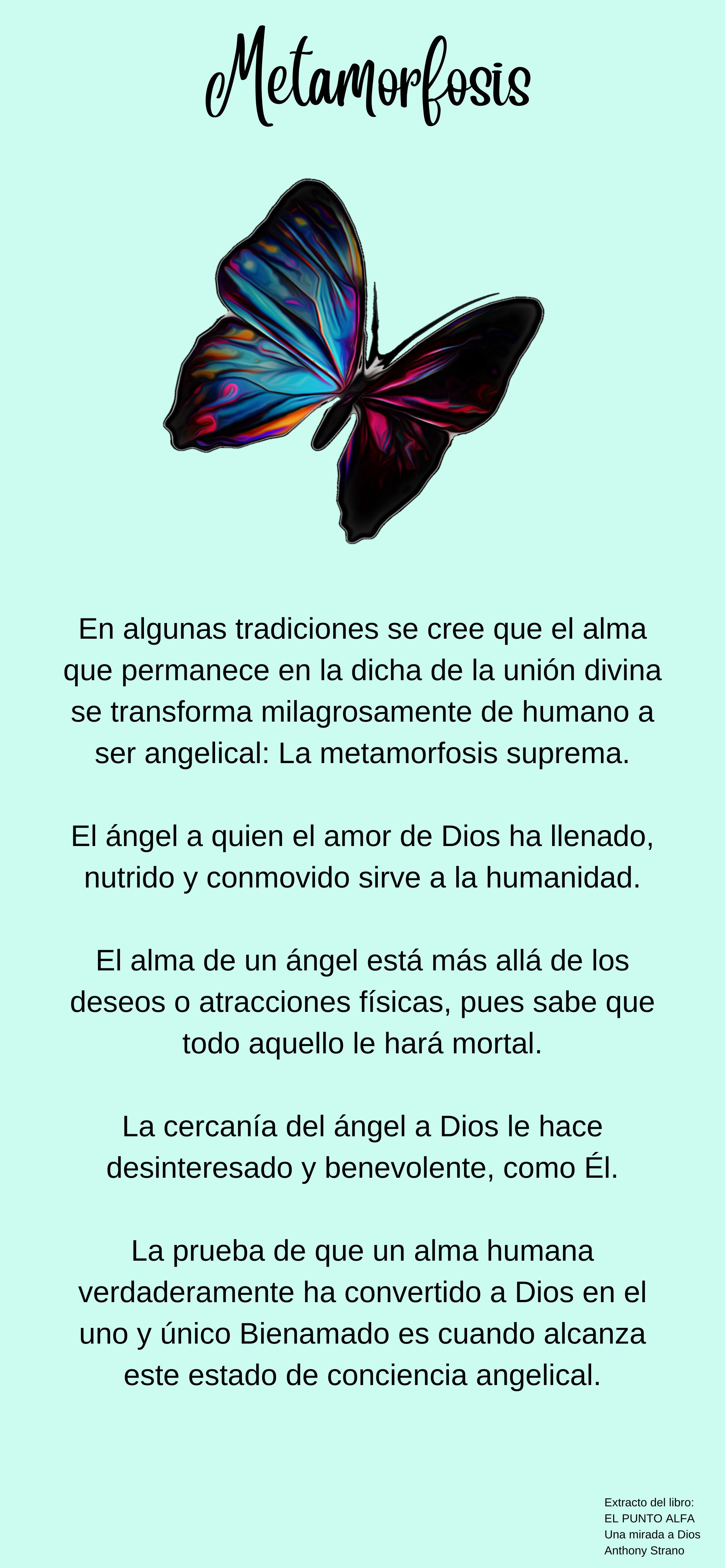 En algunas tradiciones se cree que el alma que permanece en la dicha de la unión divina se transforma milagrosamente de humano a ser angelical: la metamorfosis suprema.