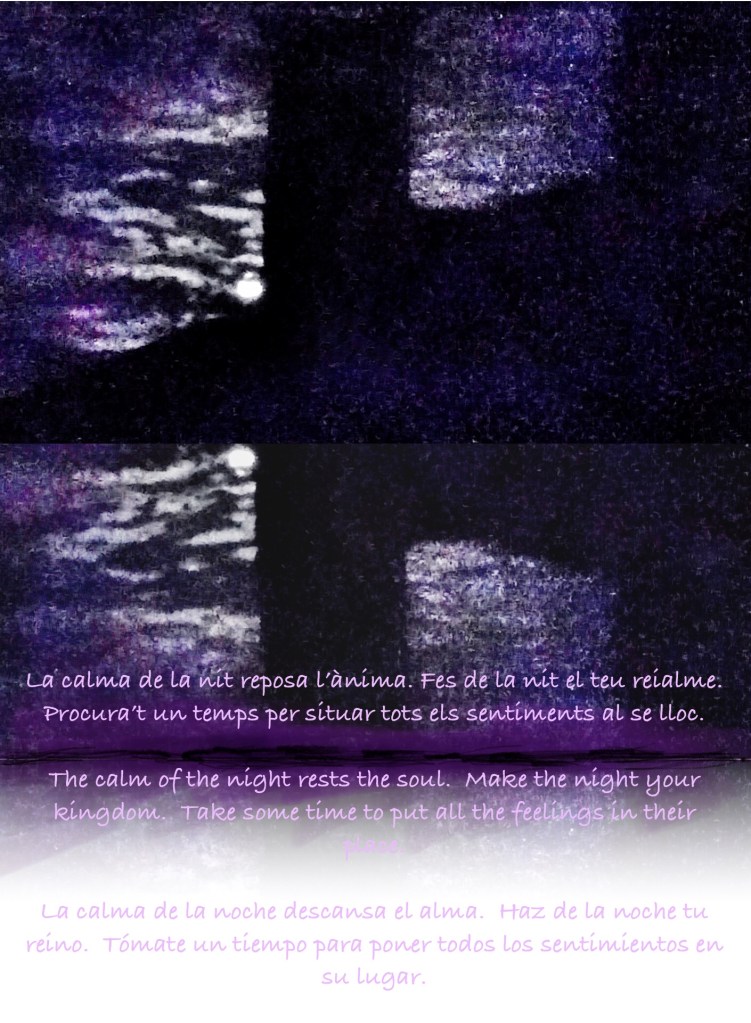 La calma de la nit reposa l’ànima. Fes de la nit el teu reialme. Procura’t un temps per situar tots els sentiments al seu lloc.