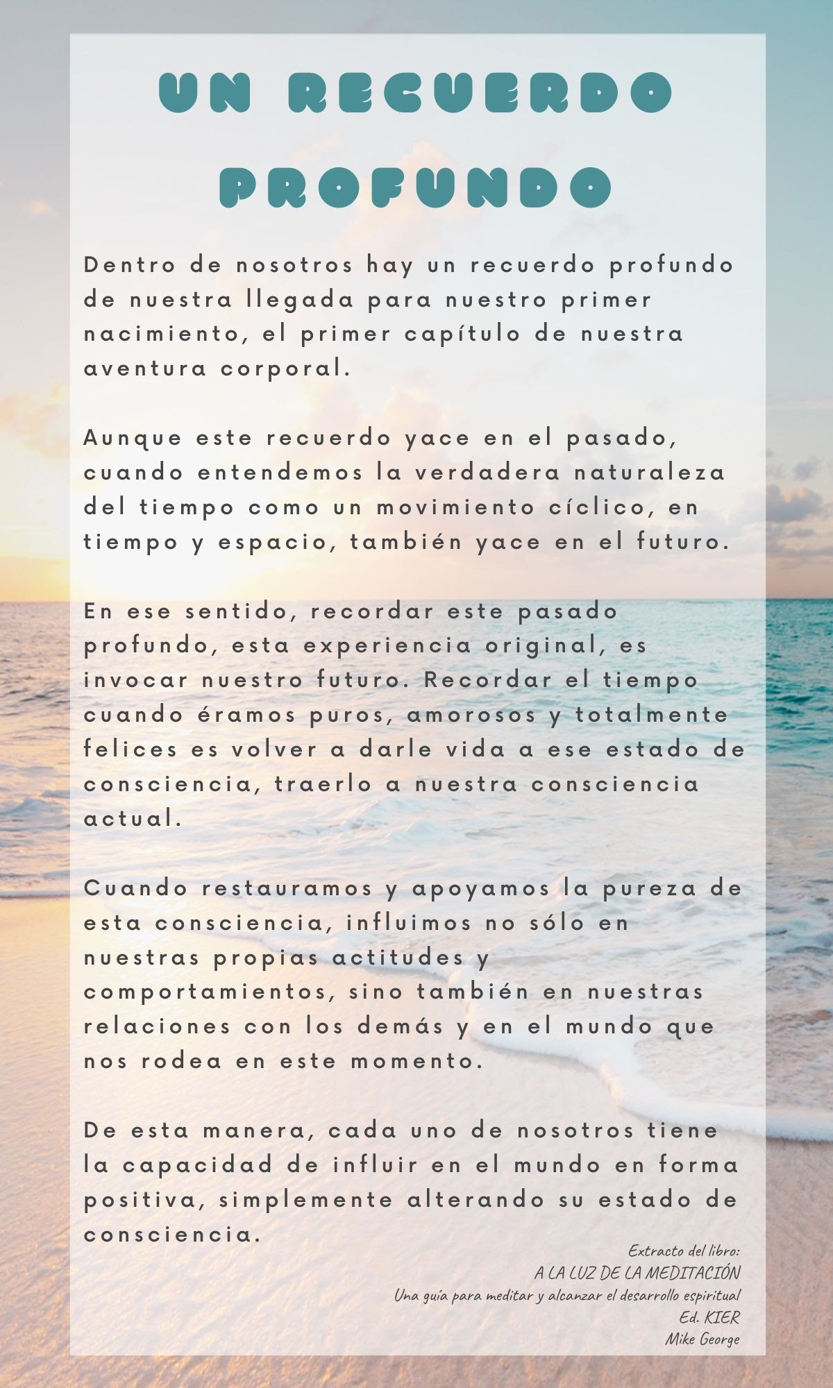 En aquest sentit, recordar aquest passat profund, aquesta experiència original és invocar el nostre futur. Recordar el temps quan érem purs, amorosos i totalment feliços, és tornar a donar vida a aquest estat de consciència, portar-lo a la nostra consciència actual.