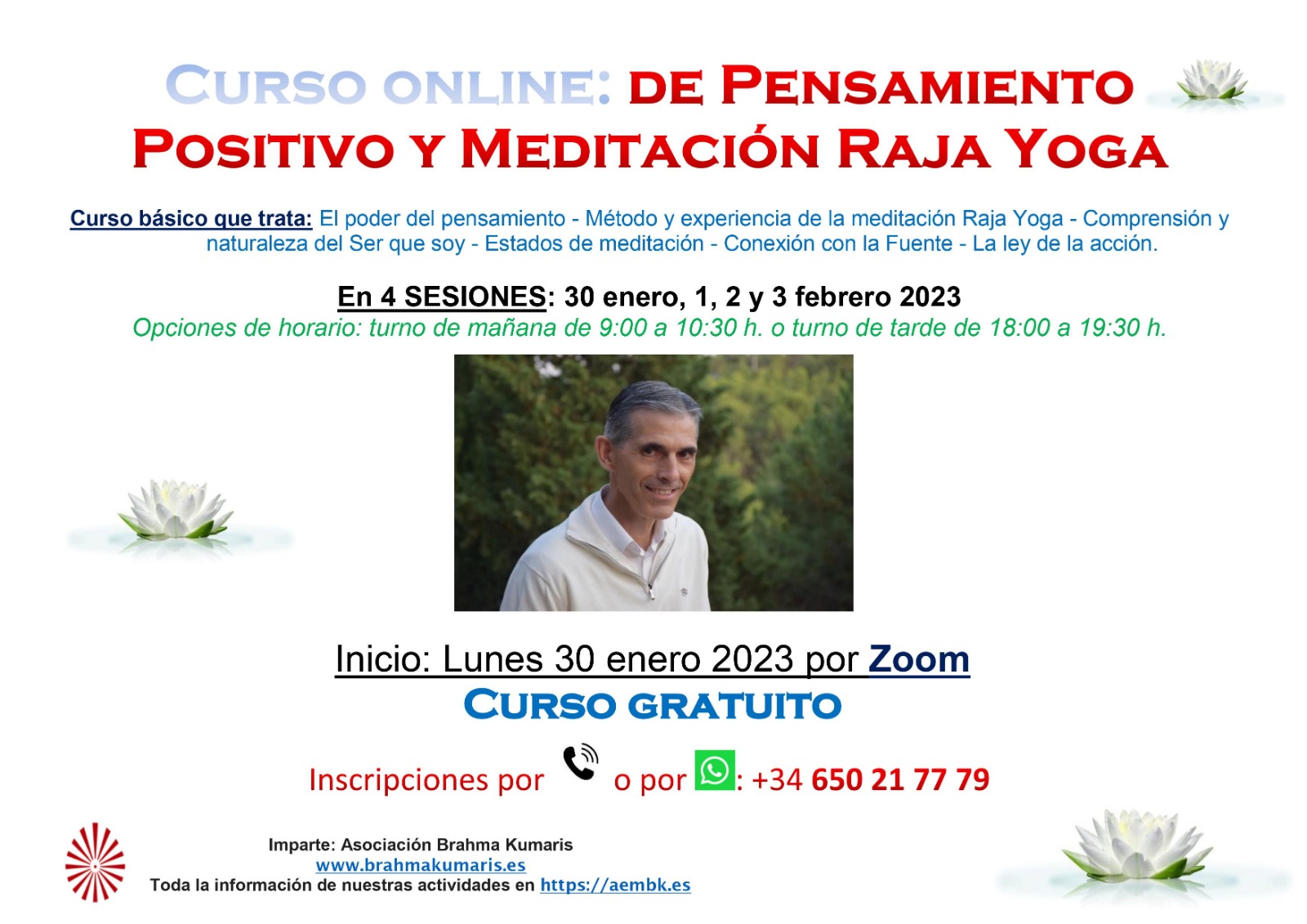 Nos complace anunciarles el inicio del próximo curso básico de pensamiento positivo y meditación Raja Yoga ONLINE