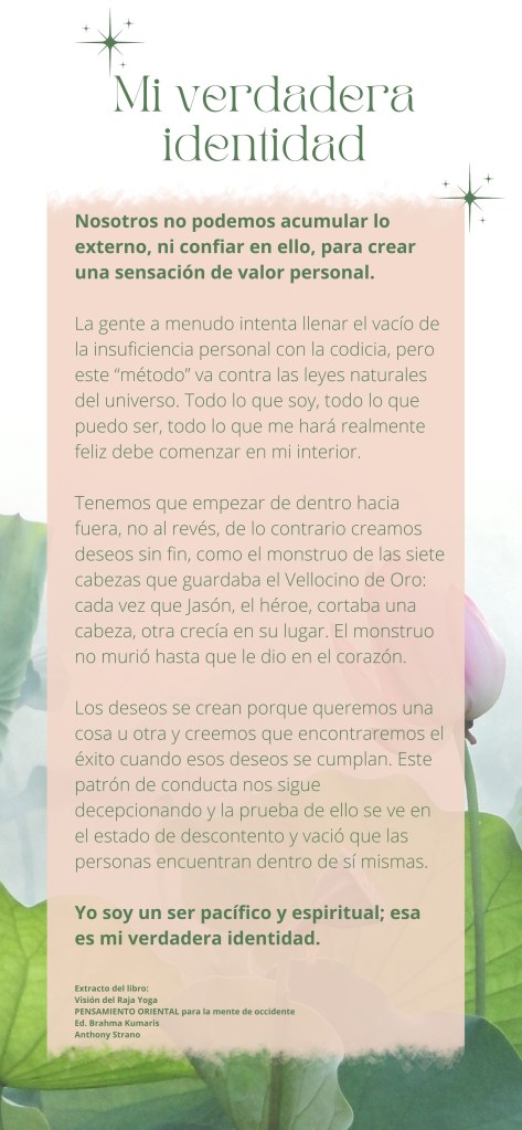 Jo sóc un ésser pacífic i espiritual; aquesta és la meva veritable identitat.