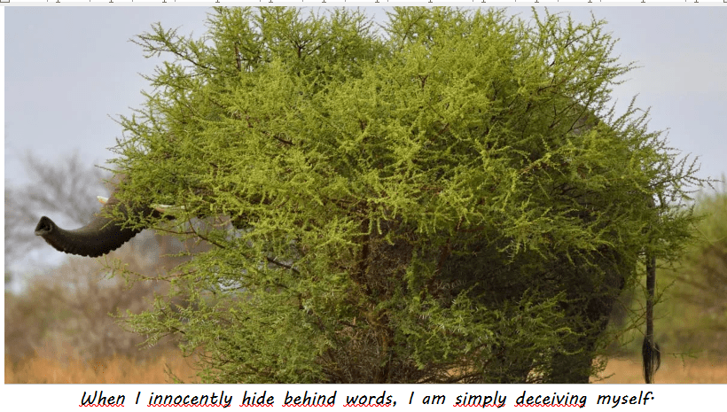 Cuando me escondo inocentemente detrás de las palabras, simplemente me estoy engañando a mí mismo.