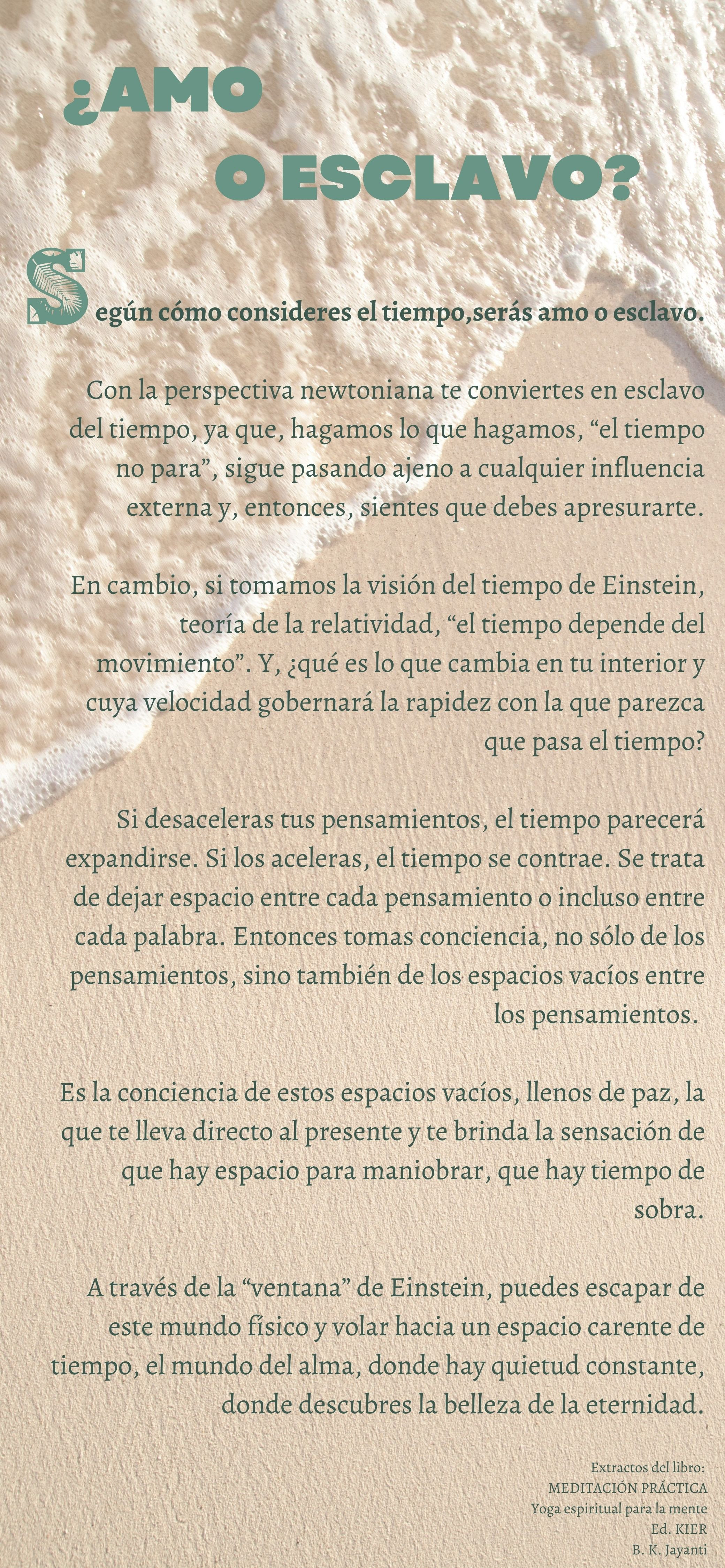 A través de la “finestra” d’Einstein, pots escapar d’aquest món físic i volar cap a un espai sense temps, el món de l’ànima, on hi ha quietud constant, on descobreixes la bellesa de l’eternitat.