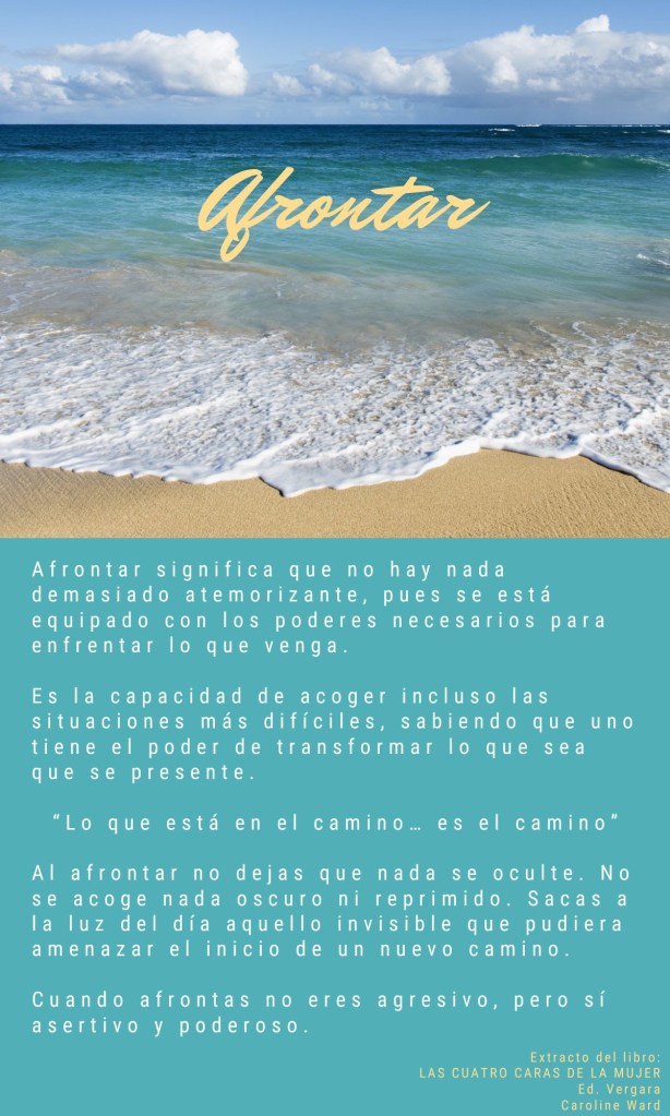 Al afrontar no dejas que nada se oculte. No se acoge nada oscuro ni reprimido. Sacas a la luz del día aquello invisible que pudiera amenazar el inicio de un nuevo camino.