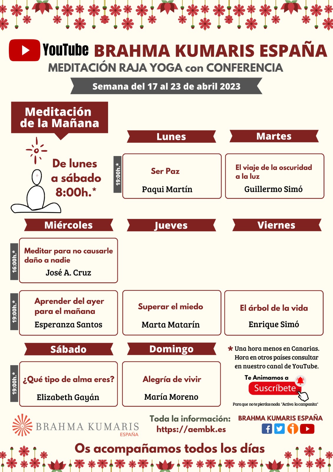 Os invitamos a nuestras “Meditaciones Raja Yoga con conferencia” desde el Canal de YouTube Brahma Kumaris España.