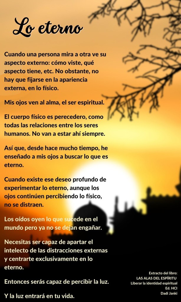 Cuando existe ese deseo profundo de experimentar lo eterno, aunque los ojos continúen percibiendo lo físico, no se distraen.