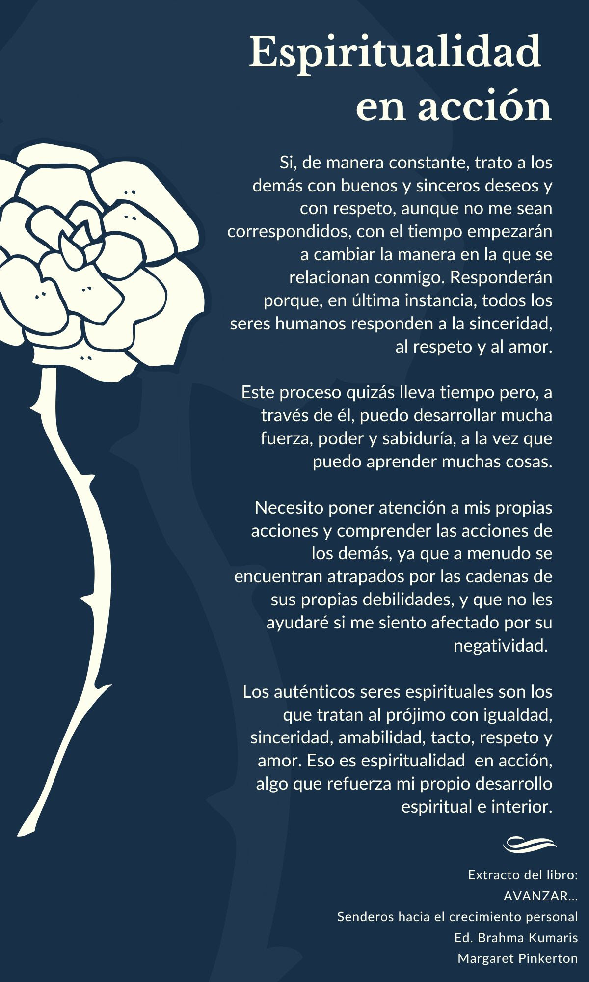 Els autèntics éssers espirituals són els que tracten el proïsme amb igualtat, sinceritat, amabilitat, tacte, respecte i amor. Això és espiritualitat en acció, cosa que reforça el meu propi desenvolupament espiritual i interior.