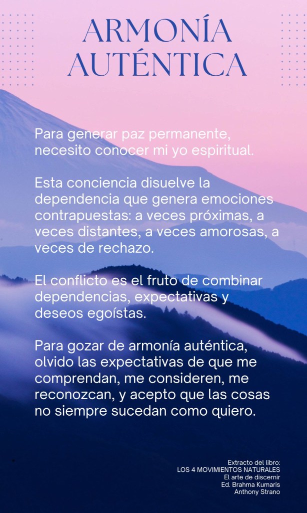 Para gozar de armonía auténtica, olvido las expectativas de que me comprendan, me consideren, me reconozcan, y acepto que las cosas no siempre sucedan como quiero.
