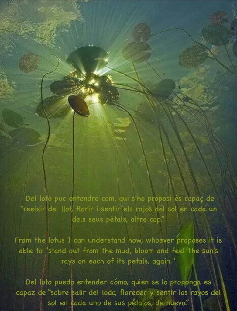 Com és una flor de loto? De segur que ja esteu familiaritzats amb el sistema de vida d’aquesta flor tan peculiar, que ha estat adoptada per la espiritualitat com a símbol de puresa, a l’estar enmig de l’aigua-llot i mantenir-se tan polida i preciosa, havent germinat en el llot profund i créixer fins arribar a la superfície, desplegant tots els seus immaculats pètals al sol.