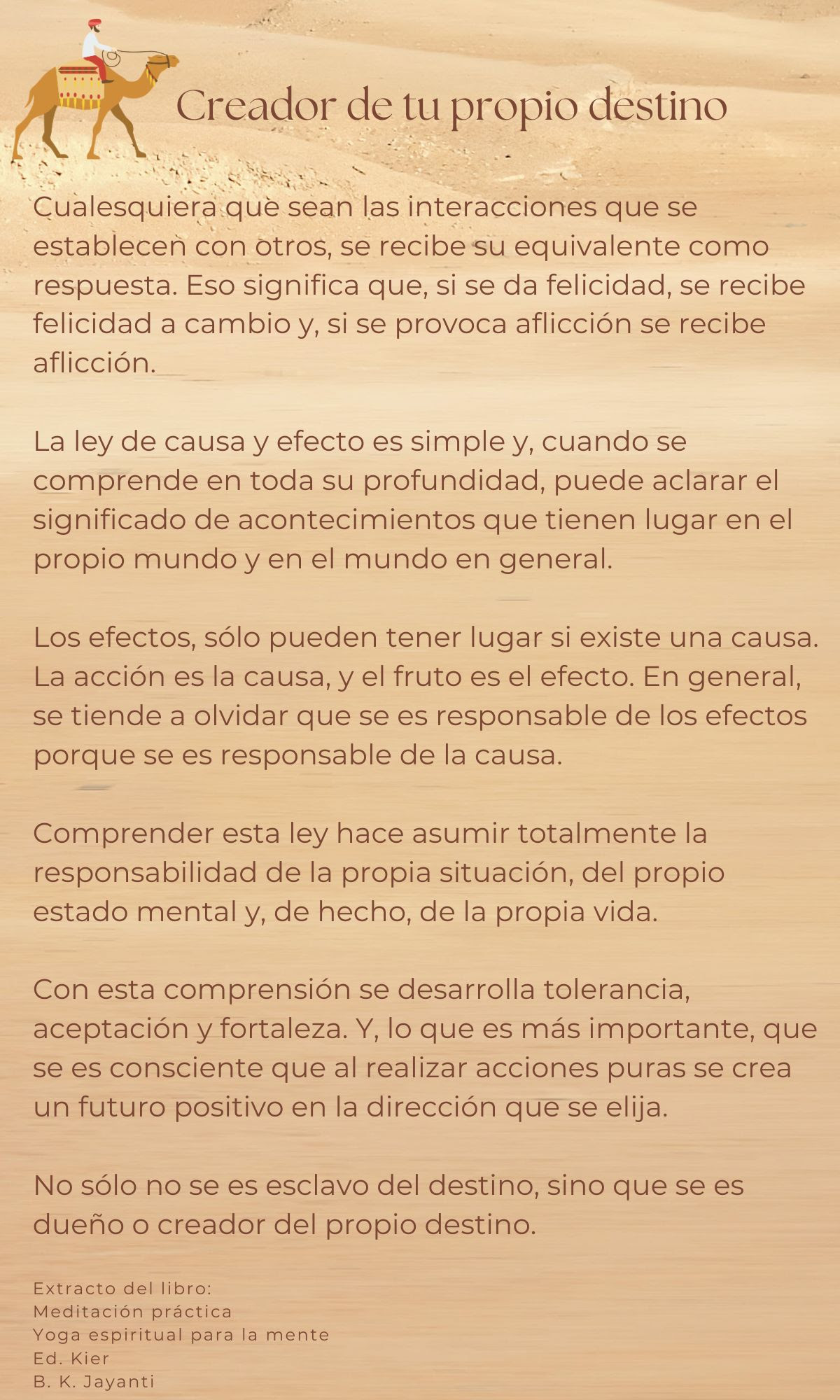 Amb aquesta comprensió es desenvolupa tolerància, acceptació i fortalesa. I, el que és més important, que s’és conscient que en realitzar accions pures es crea un futur positiu en la direcció que es triï.