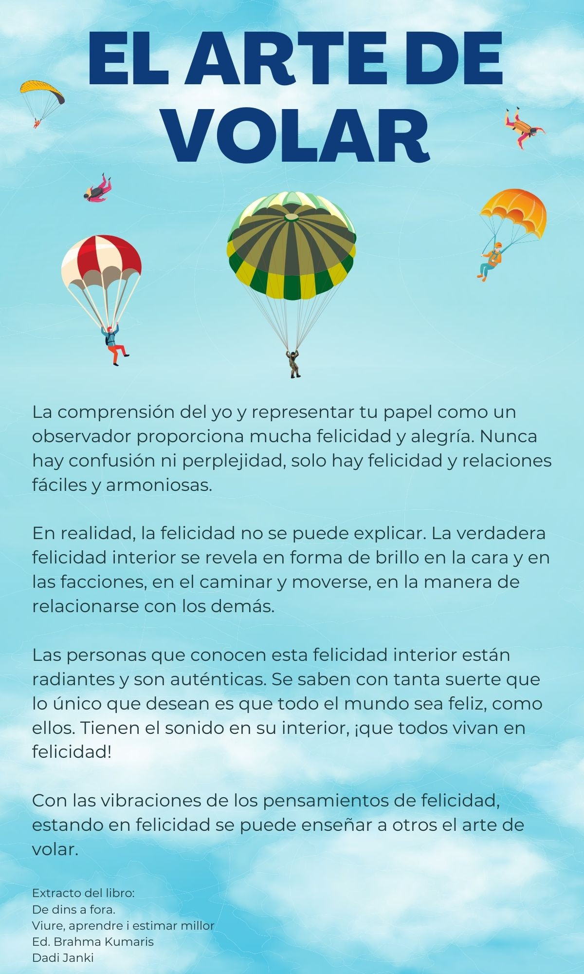 Amb les vibracions dels pensaments de felicitat, estant en felicitat es pot ensenyar a altres l’art de volar.