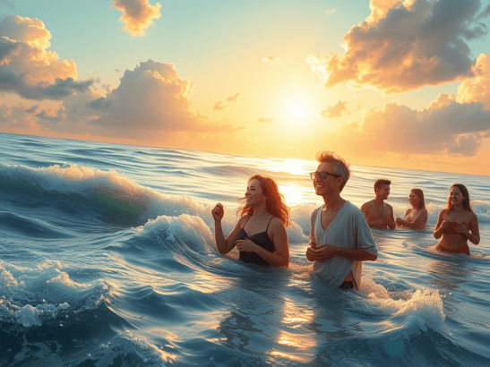 Manteniendo la conexión con Dios, que es un Océano de todas las virtudes, podemos “nadar” y jugar en Sus olas que nos envía cuando Le recordamos. Entonces…, después de haber nadado en estas dulces olas, no es necesario secarnos; dejemos que esta agua de felicidad, amor y virtudes divinas nos impregne hasta la médula. Así es como irradiamos las vibraciones de Dios.