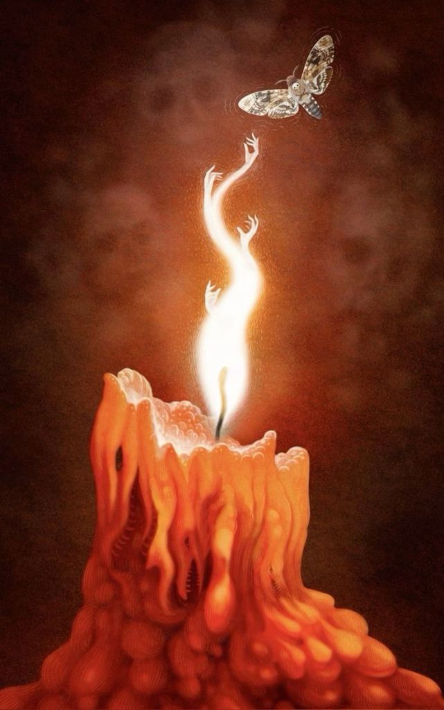 🪔La polilla se siente atraída por la luz brillante de una llama, pero no se da cuenta de que morirá hasta que ya no está a tiempo de evitarlo.