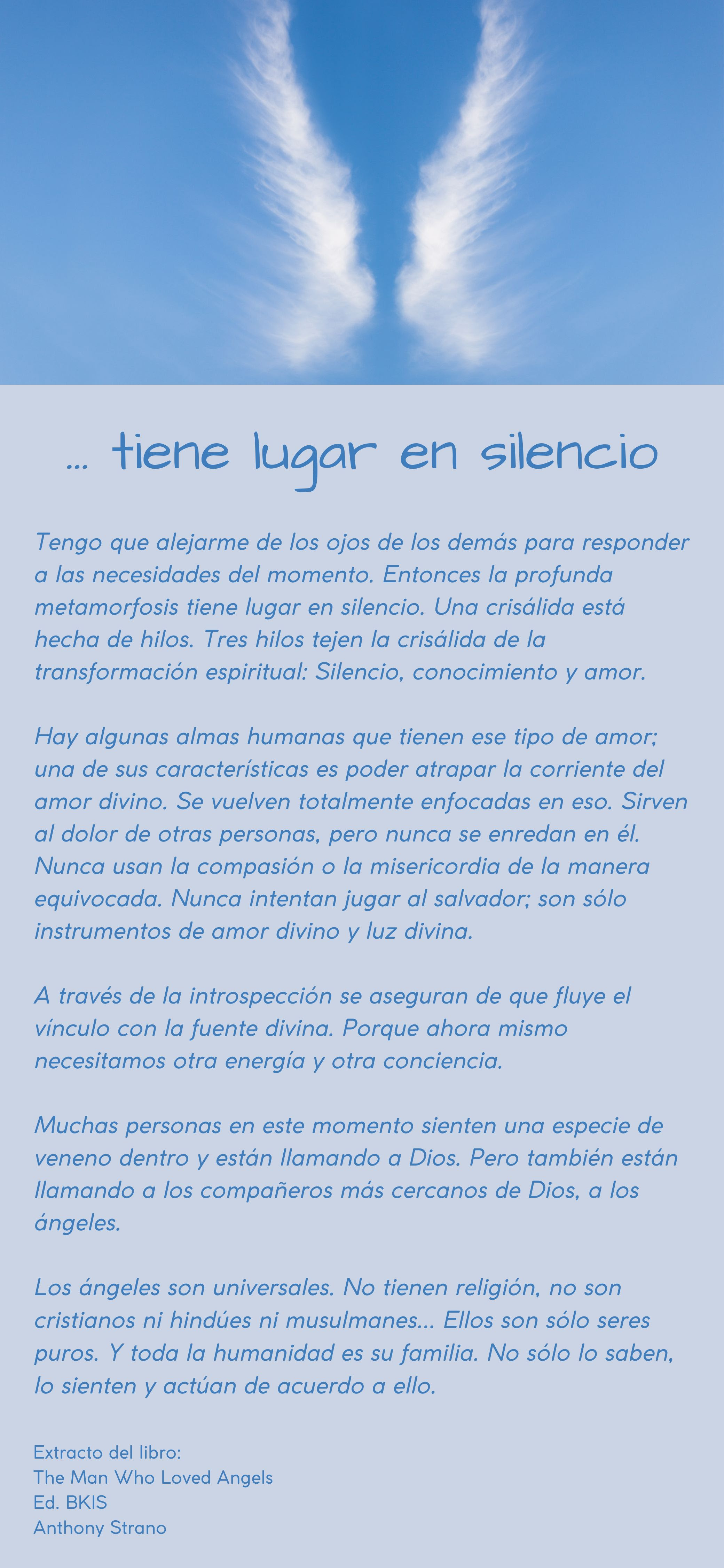He d’allunyar-me dels ulls dels altres per respondre a les necessitats del moment. Aleshores la profunda metamorfosi té lloc en silenci. Una crisàlide està feta de fils. Tres fils teixeixen la crisàlide de la transformació espiritual: Silenci, coneixement i amor.