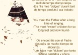Us trobeu amb el Pare després de molt de temps d’enyorança.-Els fills més “dolços” durant tant de temps perduts i ara trobats- El Pare (Déu) dels fills (les ànimes), els … Continua llegint